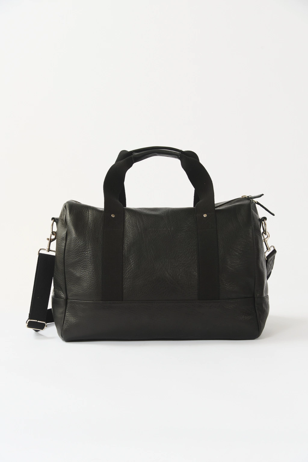 Bolso de cuero 100% natural. Tiene un llavero de niquel personalizado, cierre de apertura a contratono y correa de poliester.