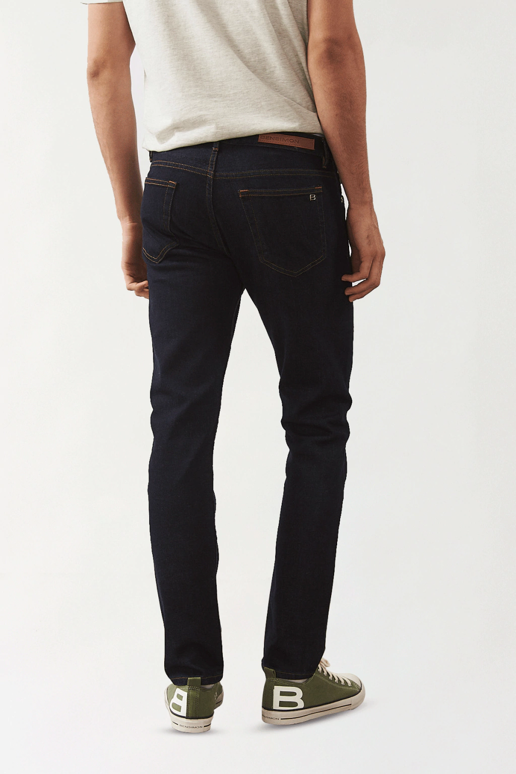 Pantalón construcción jean cinco bolsillos de calce slim . Botones metálicos en cintura. Confeccionado en Denim premium importado.